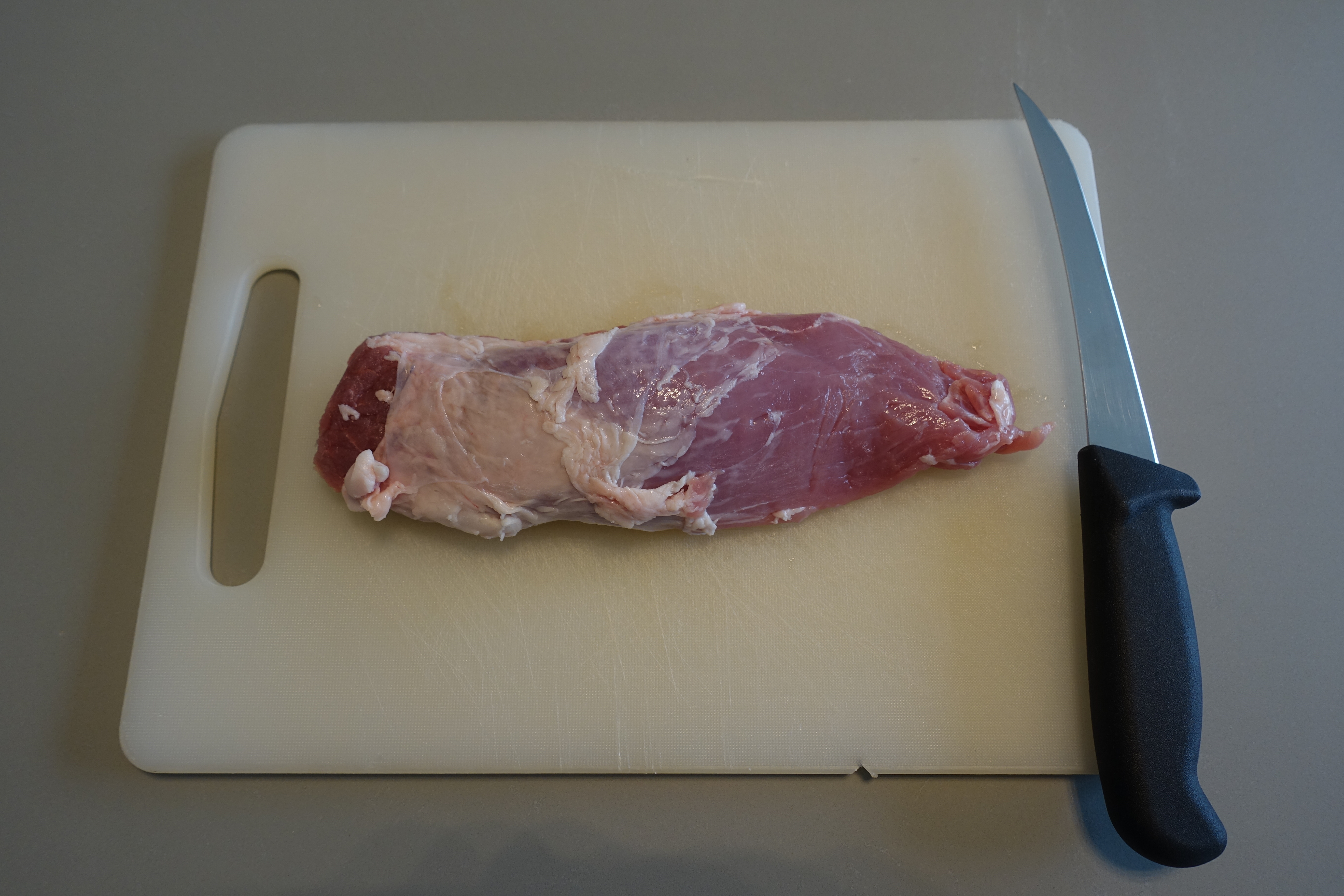 Il filetto viene trimmato (pulito dal grasso in eccesso e dalla silver skin, ovvero quella pellicina argentea che si può trovare sulla superficie del taglio).