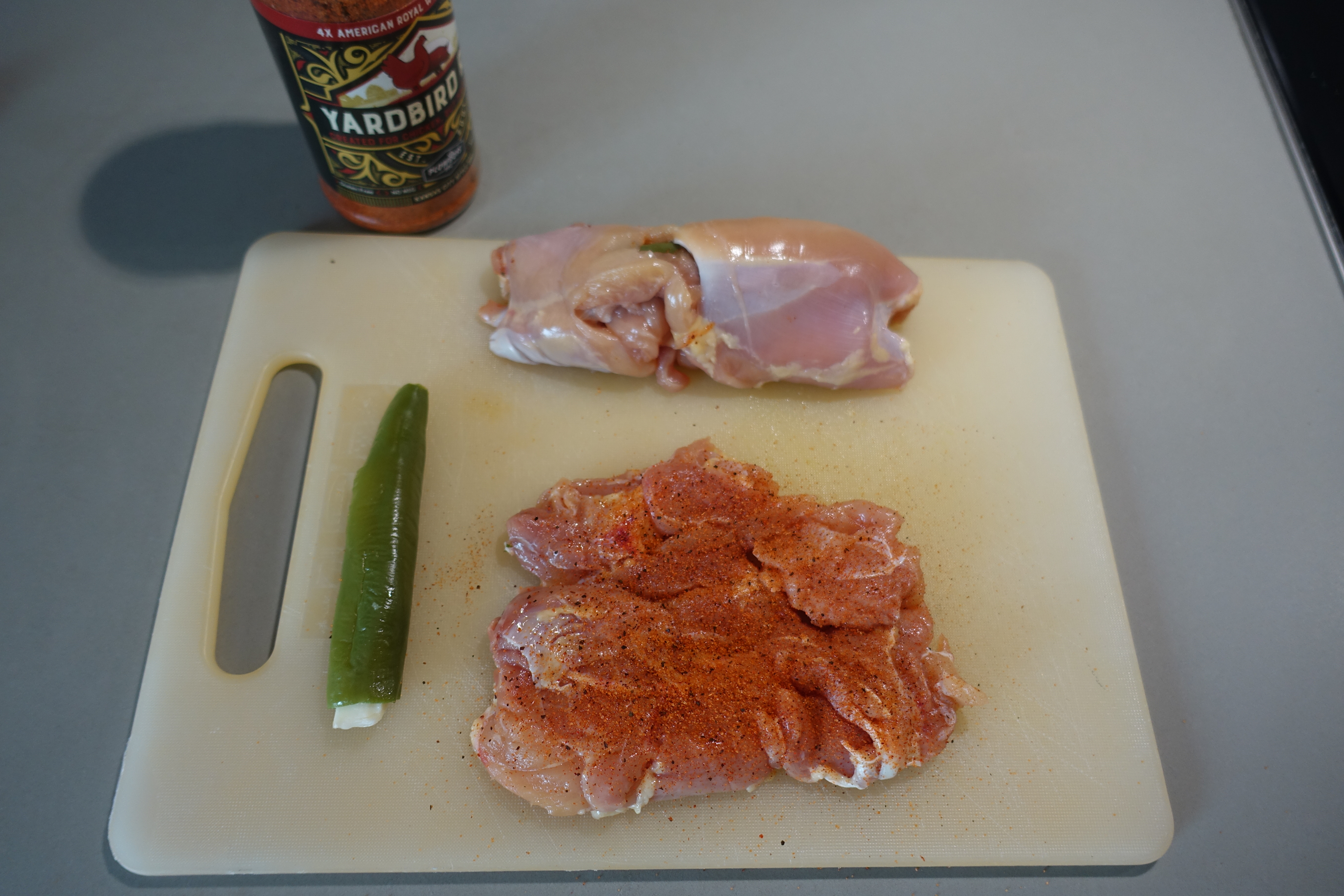 Il pollo con i peperoni è un classico dei classici quindi ci sta benissimo anche in questo caso. Se come me siete amanti del kick giusto al morso, possiamo optare per un pepper piccante di moderato valore tipo un jalapeno (in questo caso userò un non ben identificato peperone piccante del supermercato che però lo ricorda molto).