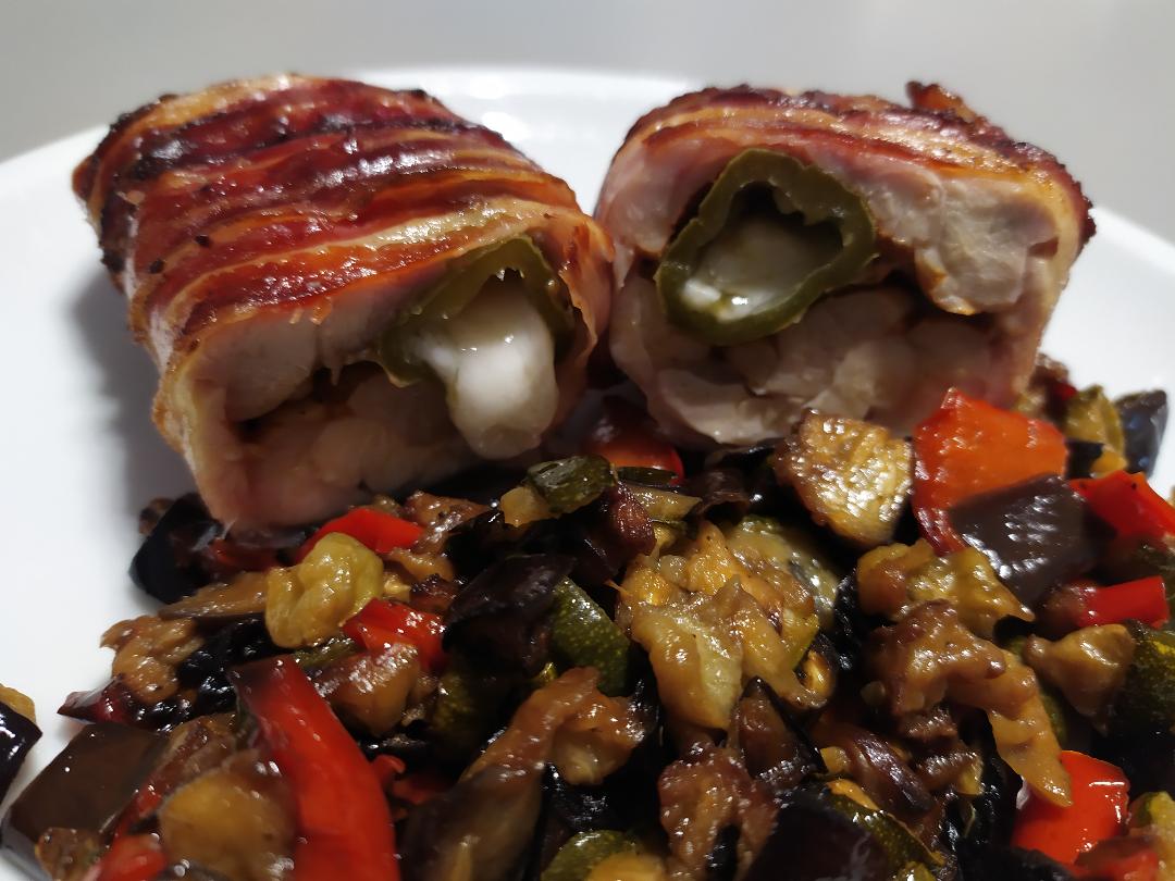 L’anatomia del Cbb è data da un cuore centrale di formaggio e verdure racchiuse dal pollo. Il bacon esternamente compatta la nostra bomba di sapore esaltando il boccone .