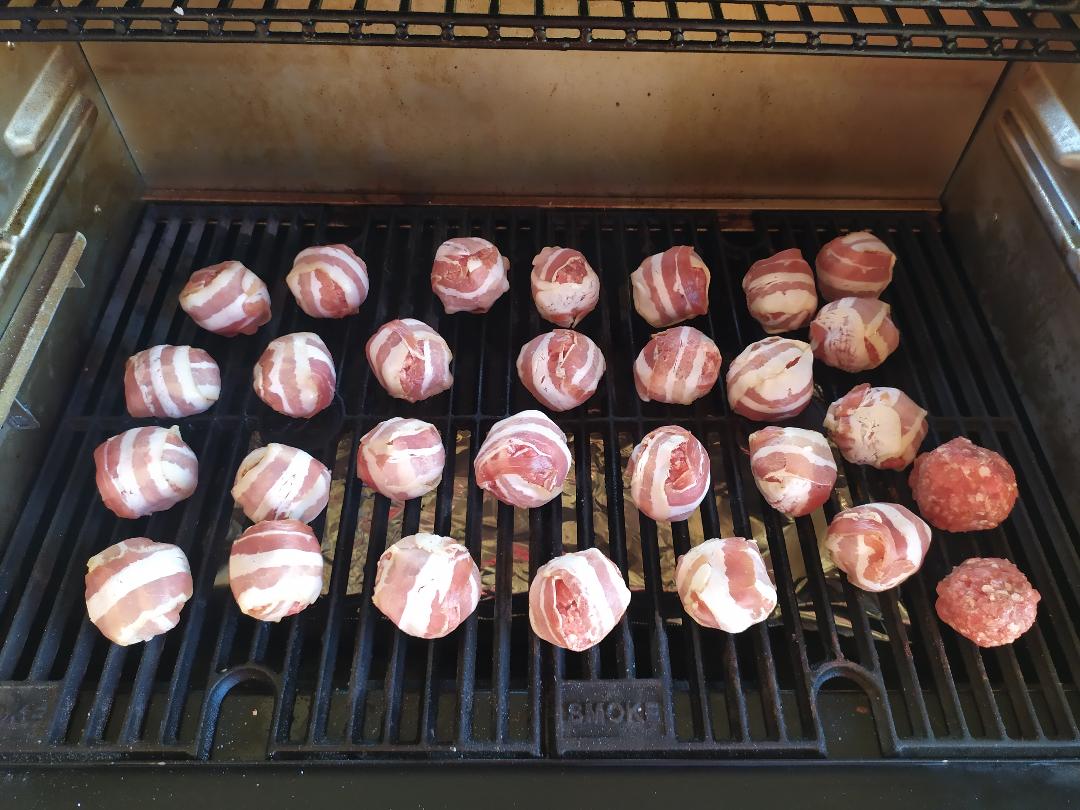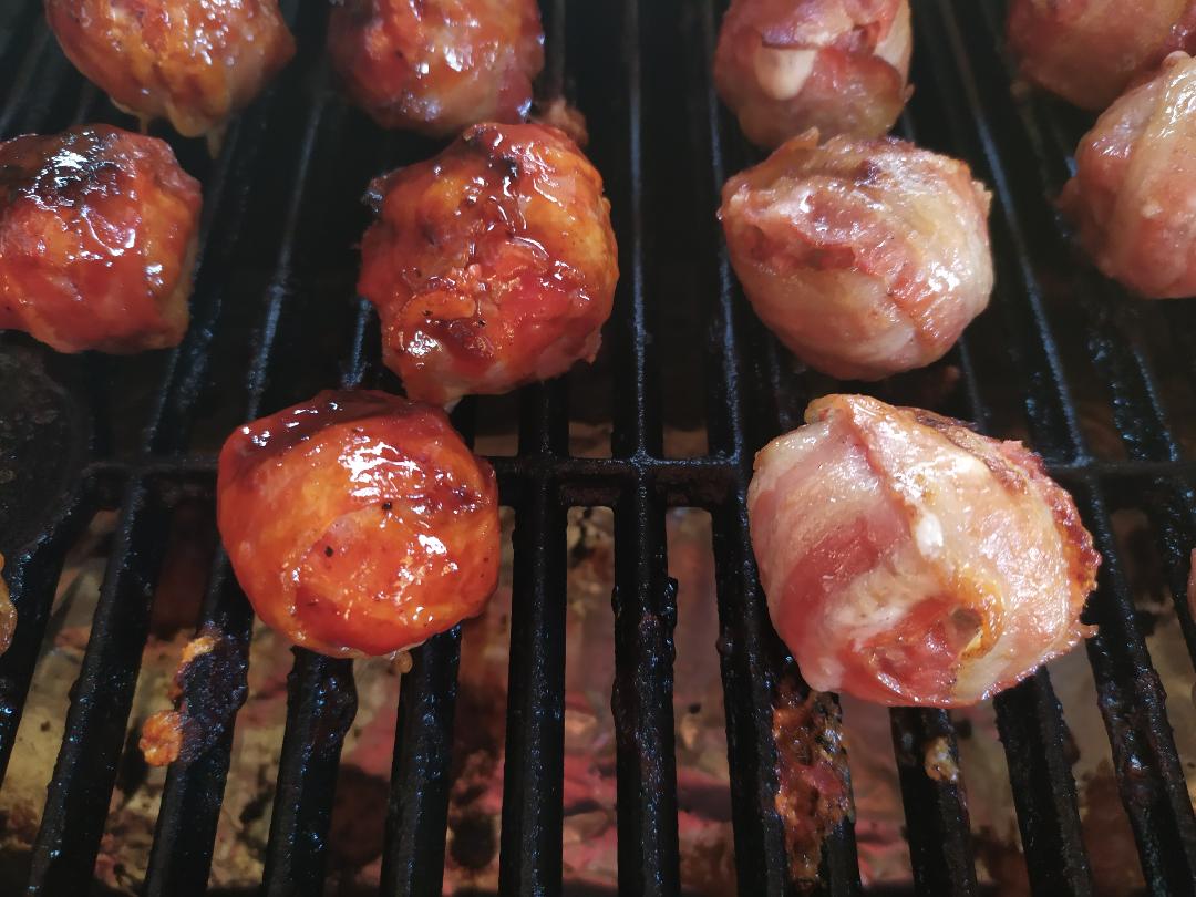 Le moinks (moo = bovino e oink=suino) balls sono delle polpette di carne con un cuore filante di formaggio avvolte da bacon (opzionale laccatura di salsa bbq). Possono essere considerate una versione finger food del classico Bacon bomb explosion.