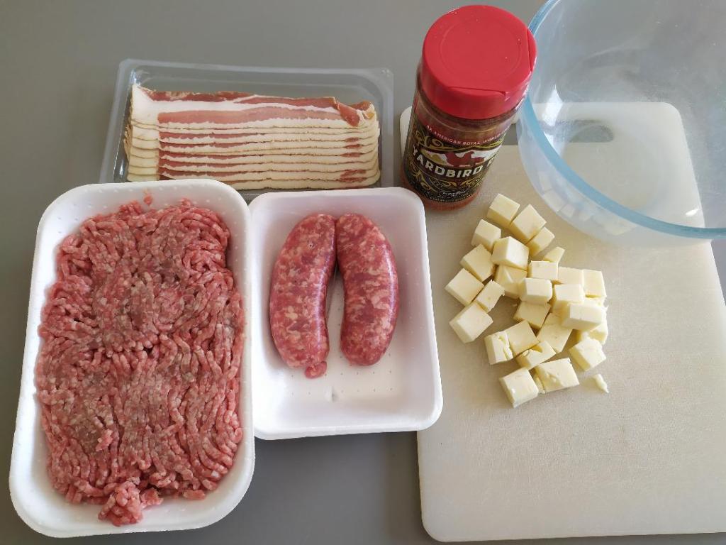 Per prima cosa andiamo a insaporire con un rub (mix di spezie) il macinato bovino che poi verrà impastato assieme alle salsicce precedentemente denudate dal budello.
